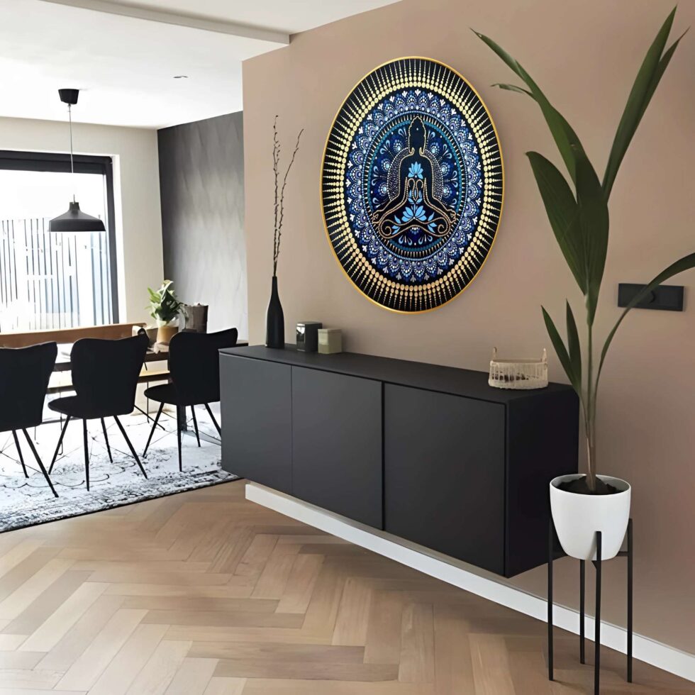 A harmonious blend of traditional artistry and modern design, this wall painting adds cultural richness to any space.